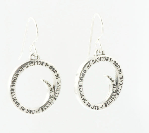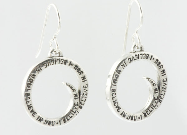 These 1" sterling silver spiral charms on sterling silver shepherd hooks is a handwritten message by Christie Grace inspired from her song, "I Believe in You" from her third album "Golden Thread" written for her daughter. Listen to the song "I Believe in You" here: https://christiegrace.bandcamp.com/track/i-believe-in-you