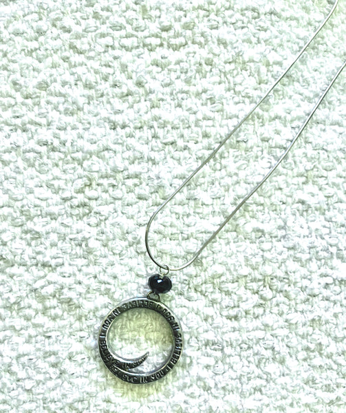 1" Round Spiral Sterling Silver Circle Pendant with " I Believe in You" is a handwritten message by Christie Grace inspired from her song "I Believe in You" from her third album "Golden Thread" written for her daughter. The charm has a 6mm faceted Black Spinel accent.